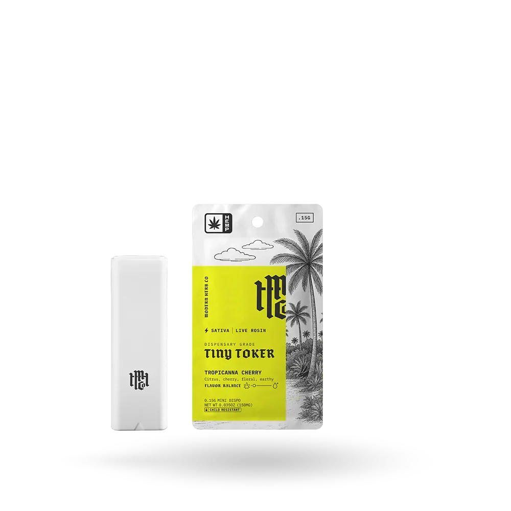 Modern Herb Co Tiny Toker THCA Vape .15 g makes a strong case that the smallest thing in your pocket can still deliver the biggest surprise. This mini disposable carries premium solventless rosin that tastes clean and bright, staying true to the plant instead of tasting artificial or muted.
